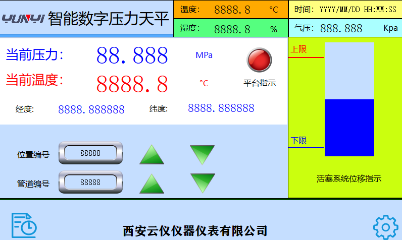為了使壓力天平的平衡更加直觀,我們首次引入了指示燈指示系統,當壓力天平發生變化同一個指示燈就會變化為不同的顏色。